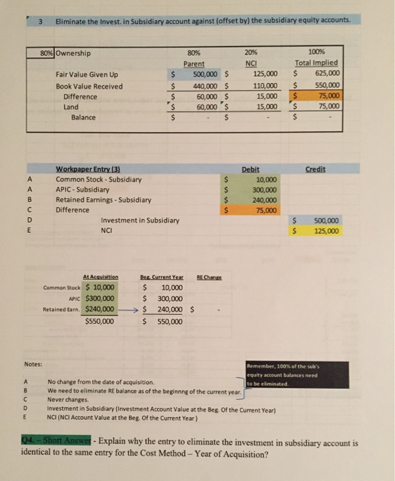 Thus on the consoldiated BS there was no investment but there was a Goodwill as an Intangible FA. Assuming the investment is held at cost then the entry will be. Therefore the elimination entry eliminates.